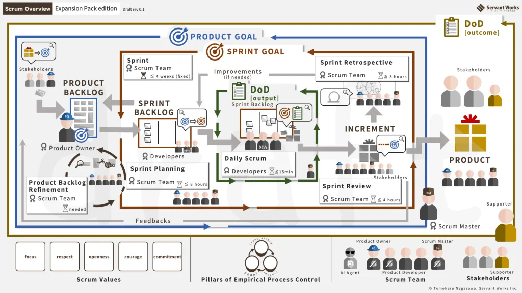 最新版: 2025年10月15日 9:00 ー スクラムガイド拡張パック概要図(改)を追加、高解像度のPNGとSVGを同梱